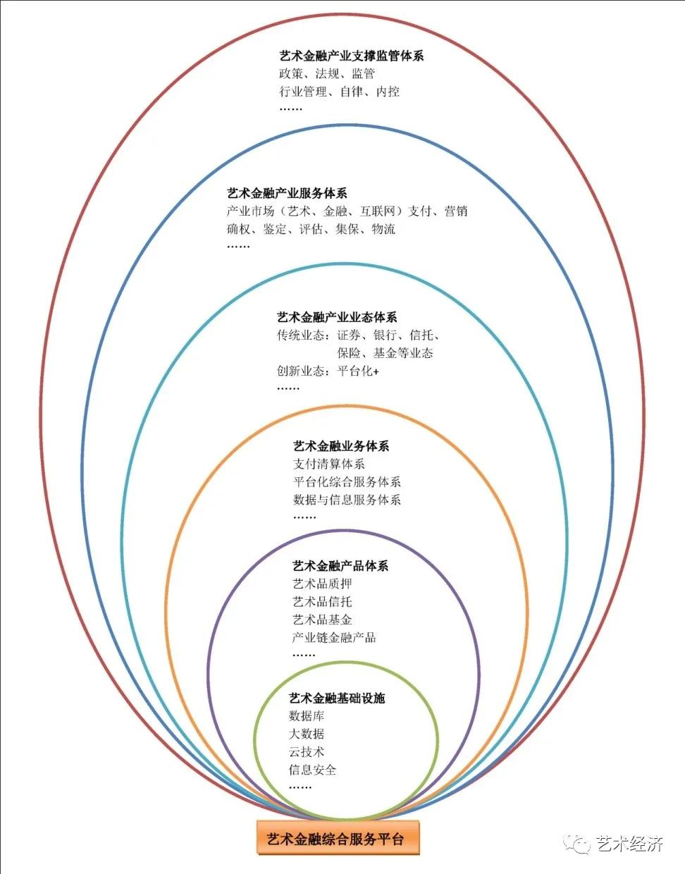 第三个背景是新科技融合发展已成为艺术金融创新的重要动力源。艺术金融是一个新的业态,它有自己发展的体系与结构。具体见下图: