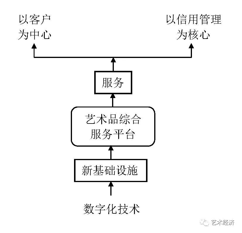当下,数字化技术正在扑面而来,艺术金融新业态的形成与发展,离不开基于数字化来建构新的基础设施。新业态的形成要靠新的基础设施来推动,互联网、数字化技术的发展与管理等,像高速公路一样,成为一个市场与产业发展的基础,在此基础上通过综合服务平台为客户服务。服务内容包括艺术金融科技创新的两个非常重要的方向,一个是以客户为中心,一个是以信用管理为核心。这就是我们所面对的艺术金融创新发展的第一个层面。