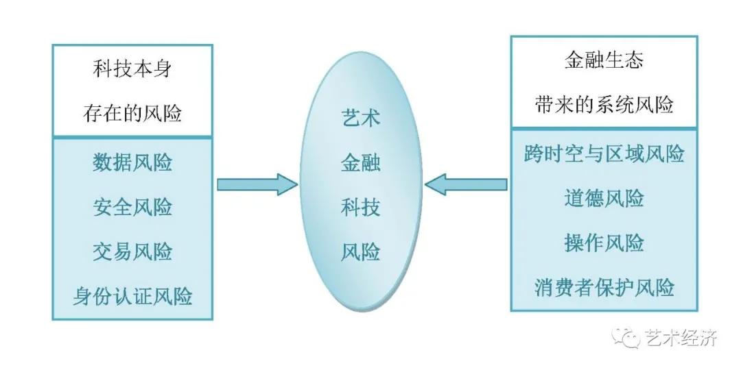 一方面,科技融合发展培育艺术金融新业态的生发;另一方面,新的业态也需要面对新的风险,即科技融合发展带来的科技风险。其结构关系可以具体见下图: