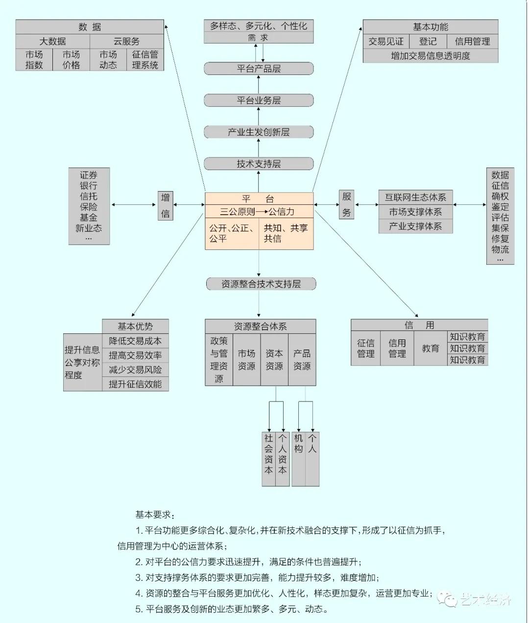 3.整合能力:基于新的基础设施,建构资源整合与评价技术与体系。整合社会资源、机构(企业)资源以及个人资源,这些资源需要评估,客户需要研究与管理。以客户管理为例,如果说以前的平台管理仅仅是客户资料的管理,然后演变成需求的管理,而这种管理不仅仅是资料的管理,而是进一步的精准管理,之后,更为重要的是进行对客户的征信和信用的管理,从而进一步提升了整个平台的整合能力。